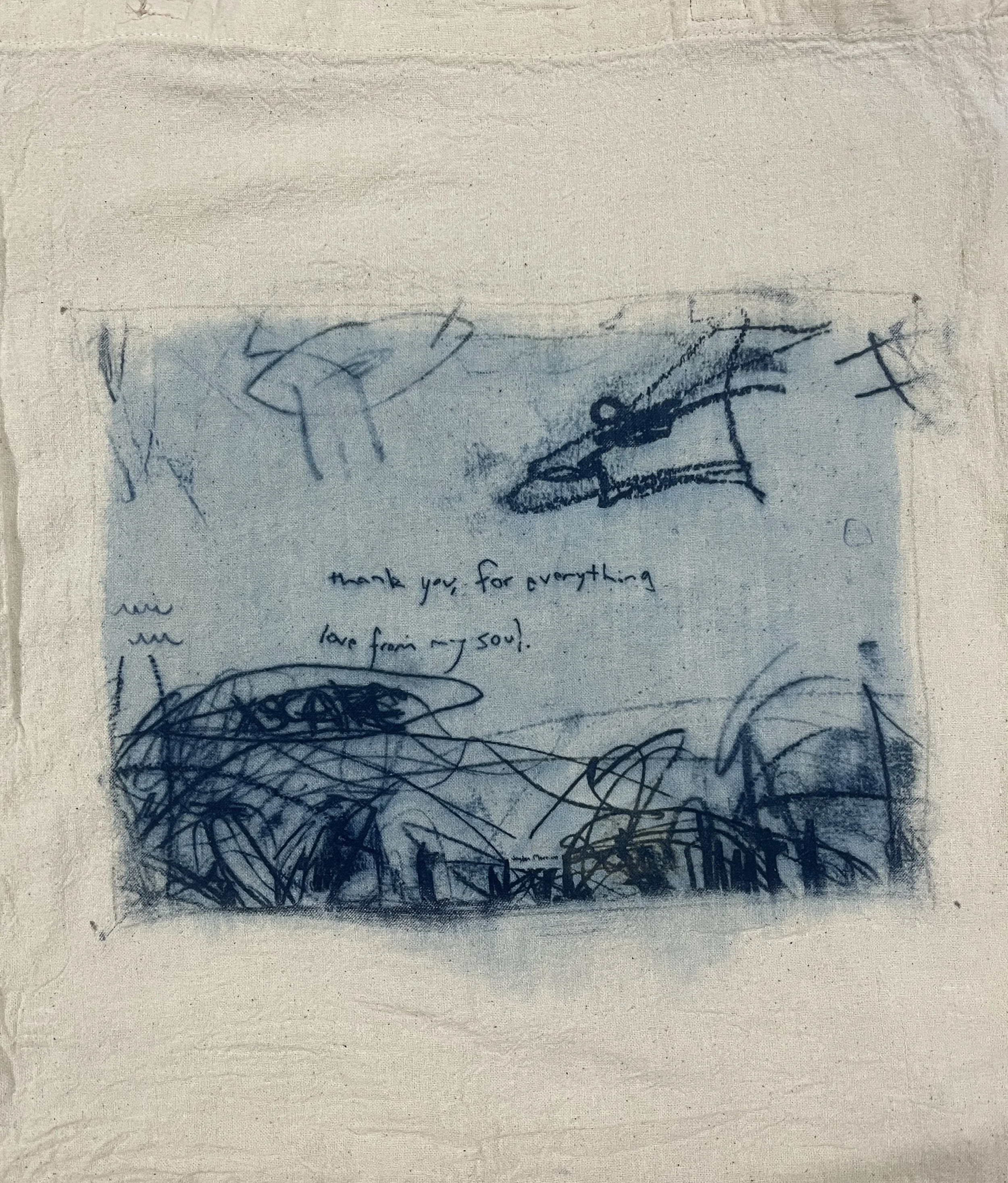 LET THE WORLD KNOW YOU HAVE GOOD TASTE WHEREVER YOU GO CUSTOM MADE TOTE BAGS Tote 1 - you have arrived at your destination $35.00 Tote 2 - thoughts and feelings, thank you $35.00 Tote 3 - thank you for everything, love from my soul $35.00 Tote 4 - sorry I didn’t save the world my friend. $35.00